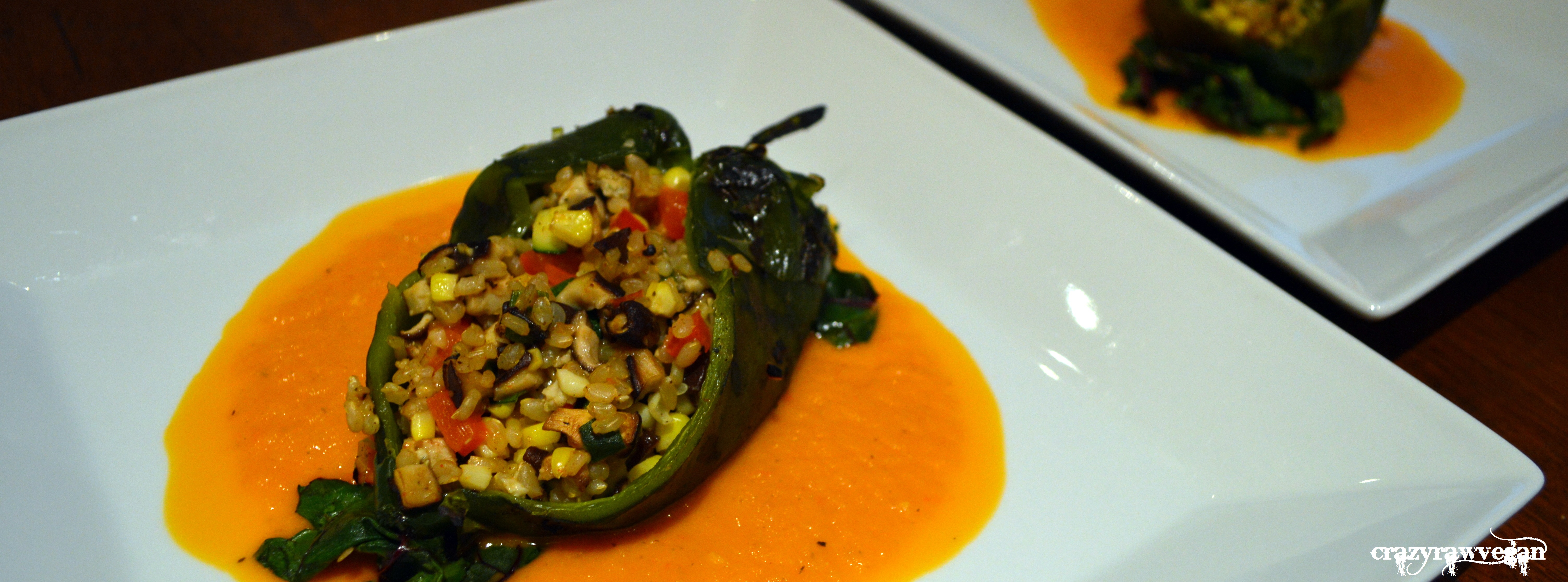 I can’t remember the last time I cooked something a little gourmet from scratch! My partner is currently working out of the country during the week so figured he deserved a home cooked meal before flying out again early tomorrow morning. It was a mission, but well worth it – these vegan stuffed poblano peppers from the Candle 79 cookbook taste as good as they look!