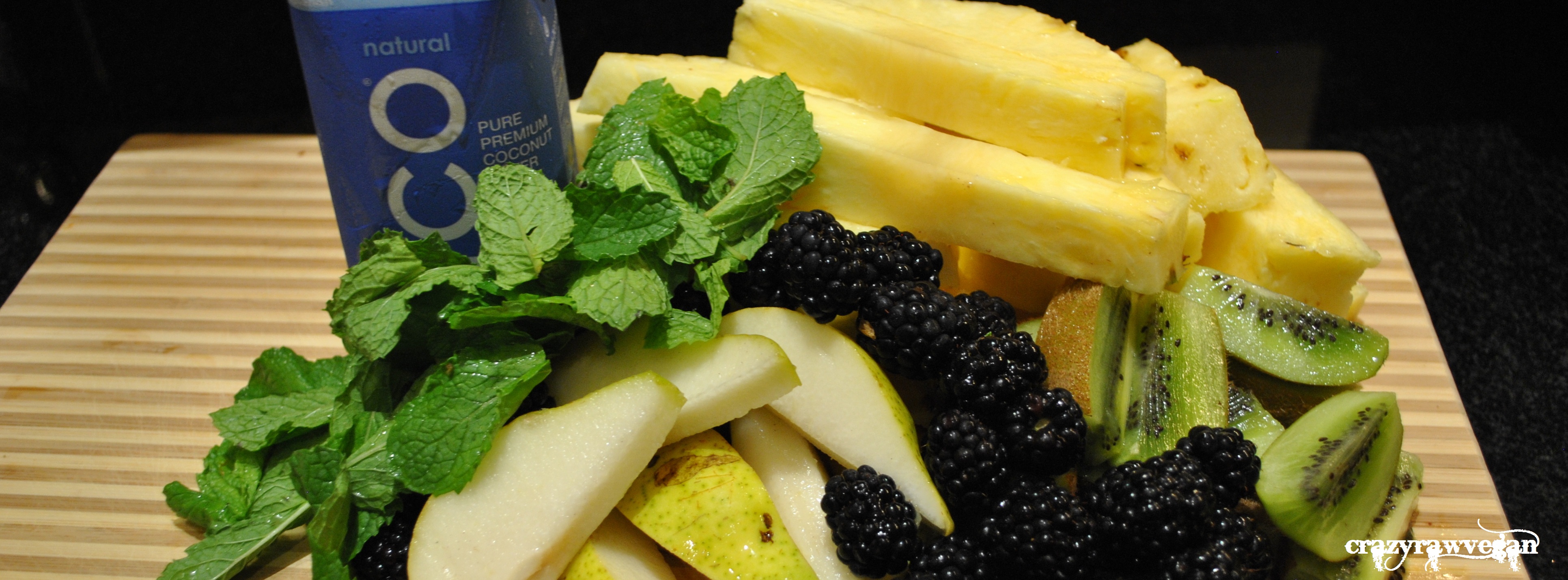 I played with the quantities of ingredients a bit to use up what I had in the fridge and I used the core of the pineapple so the juice has a nice chunky texture which I find a little more filling. I would have preferred to use fresh coconut water but there was nowhere in this weather to get one so I used a pre-packaged one I had in the fridge, but as Scott Allen says… “done is better than perfect”.