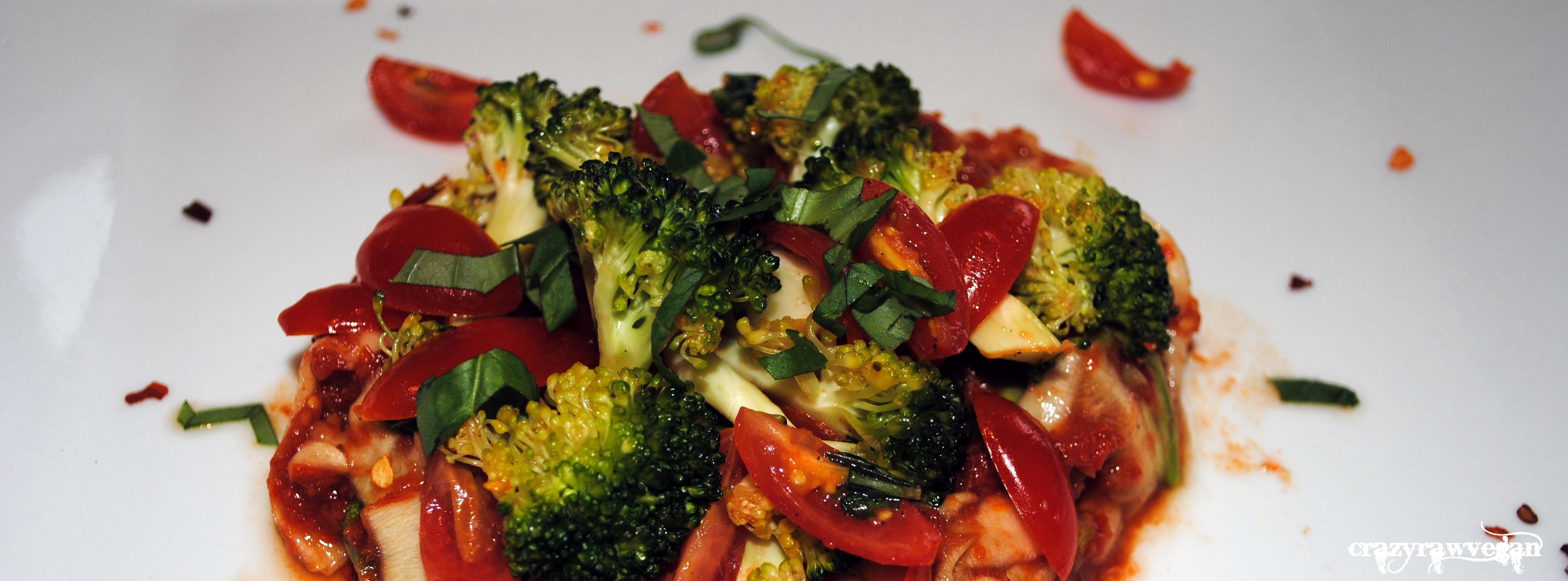 • Quarter .5 cup of tomatoes and mix with broccoli florets and 2 torn basil leaves in a tiny splash of EVOO and sprinkling of salt + pepper – add to dehydrator